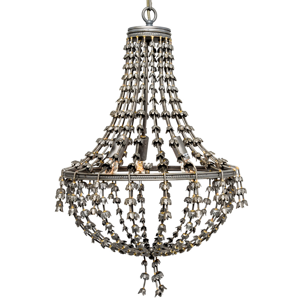 Размер: Ø 45 см, высота 69 см (без учета длины подвесной цепи) Длина подвесной цепи: приблизительно 1,5 м, регулируется согласно планировке владельца Количество ламп: 5 Тип электрической лампы: E14 Продается без ламп Материал: металл Цвет: темное серебро с небольшими золотистыми деталями Размер в упаковке: 54×54×65 см Вес: 4,6 кг, вес в упаковке: 7,3 кг